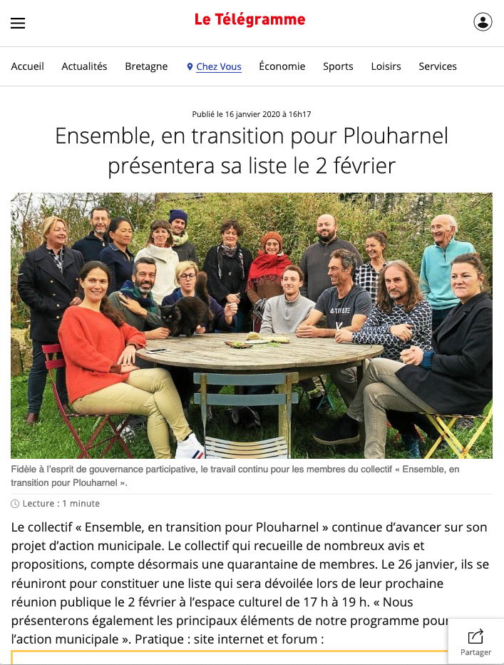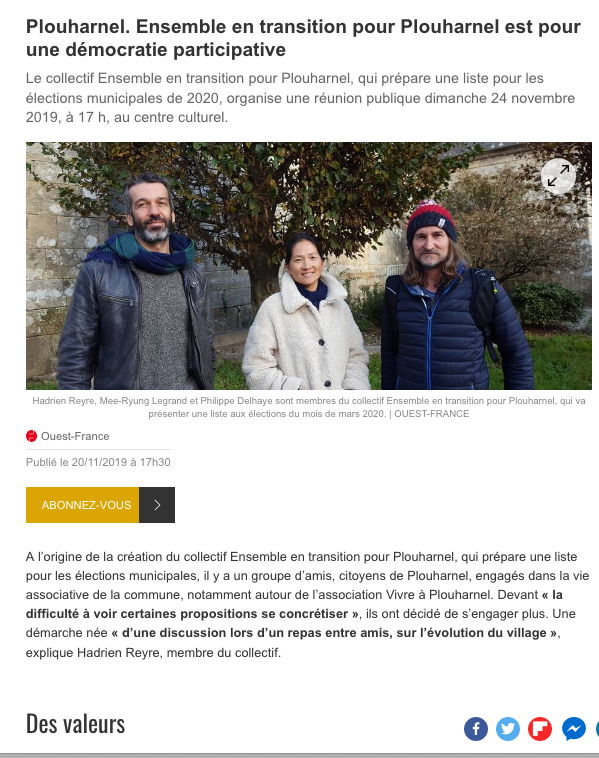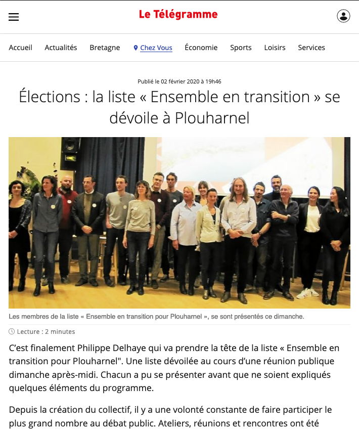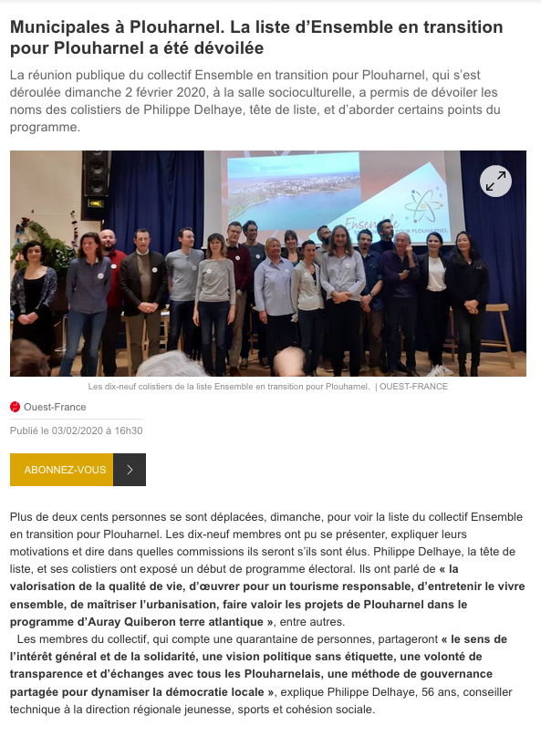 Revue de presse: l'histoire de notre liste municipale pour Plouharnel dans la presse locale.