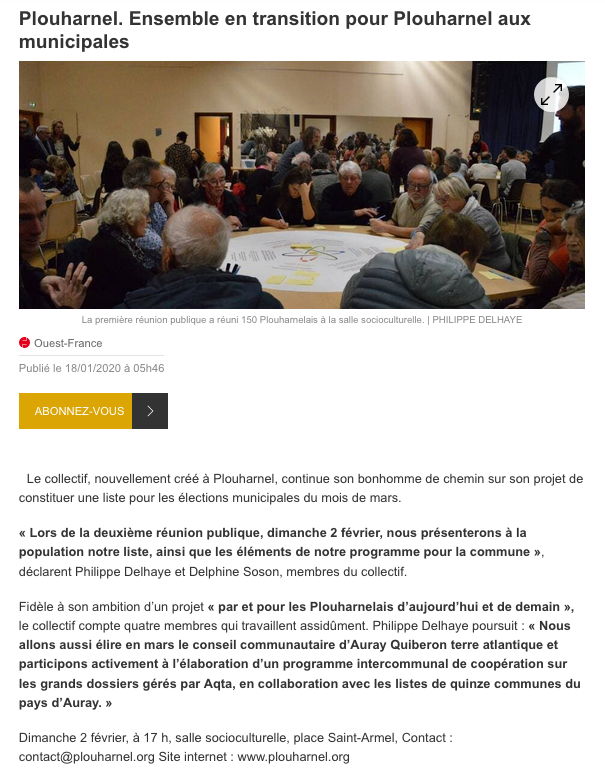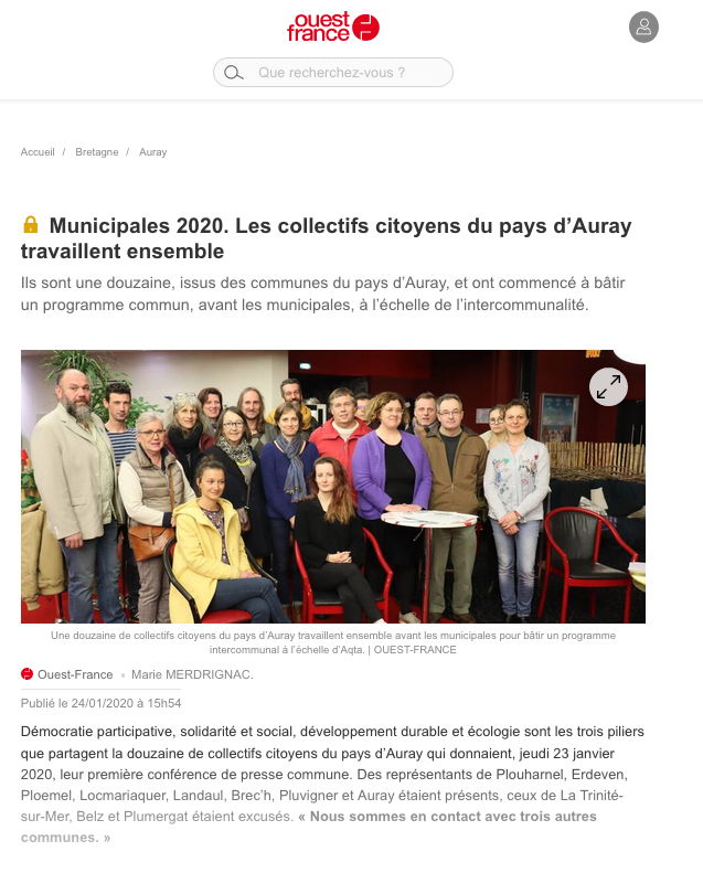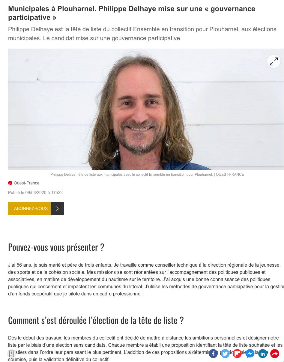 Revue de presse: l'histoire de notre liste municipale pour Plouharnel dans la presse locale.